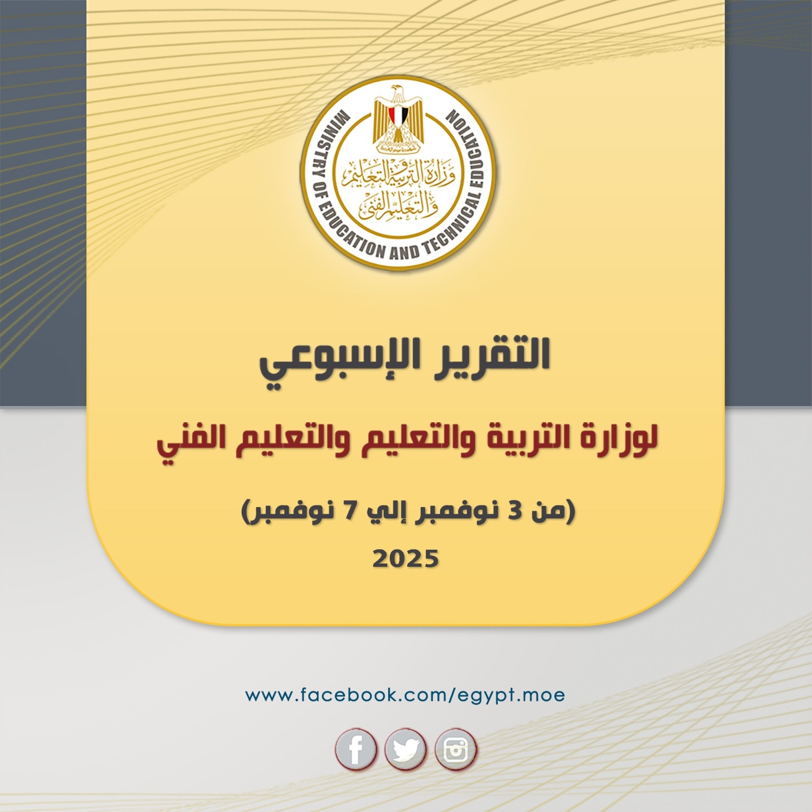 أصدر المركز الإعلامي لوزارة التربية والتعليم والتعليم الفني التقرير الأسبوعي للوزارة ويتضمن ما يلى :