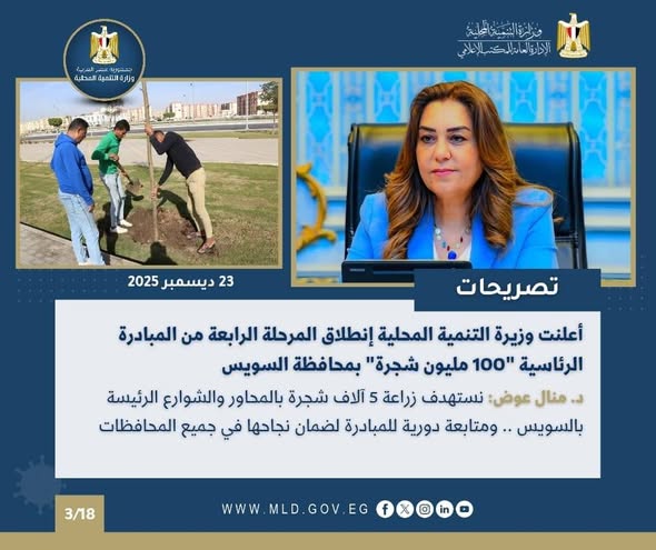وأعلنت الدكتورة منال عوض وزيرة التنمية المحلية والقائم بأعمال وزير البيئة، عن إنطلاق المرحلة الرابعة من المبادرة الرئاسية لزراعة “100 مليون شجرة” بمحافظة السويس، والتي تهدف إلى تعزيز وتحسين جودة الهواء ودعم جهود الدولة للتحول نحو الاستدامة البيئية، حيث تم البدء في زراعة 5040 شجرة متنوعة بعدد من المحاور والطرق الرئيسية بالمحافظة .
