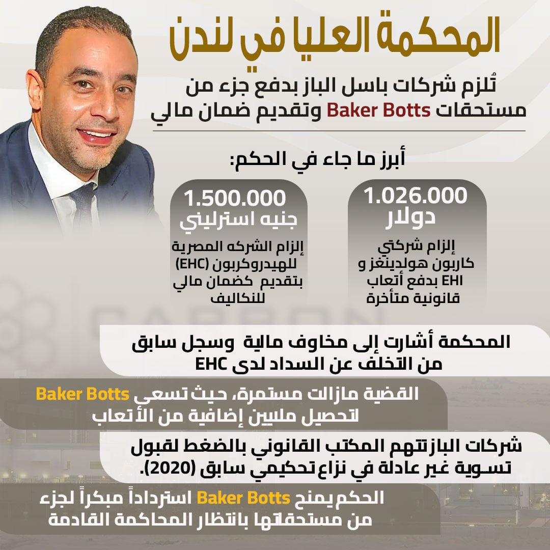 في تطور جديد في النزاع القضائي بين مجموعة شركات رجل الأعمال المصري باسل الباز وشركة المحاماة الدولية Baker Botts، أصدرت المحكمة العليا في لندن حكمًا لصالح الأخيرة، يقضي بإلزام الشركات التابعة للمجموعة بدفع مبالغ مالية كبيرة وتقديم ضمان للتكاليف القانونية.