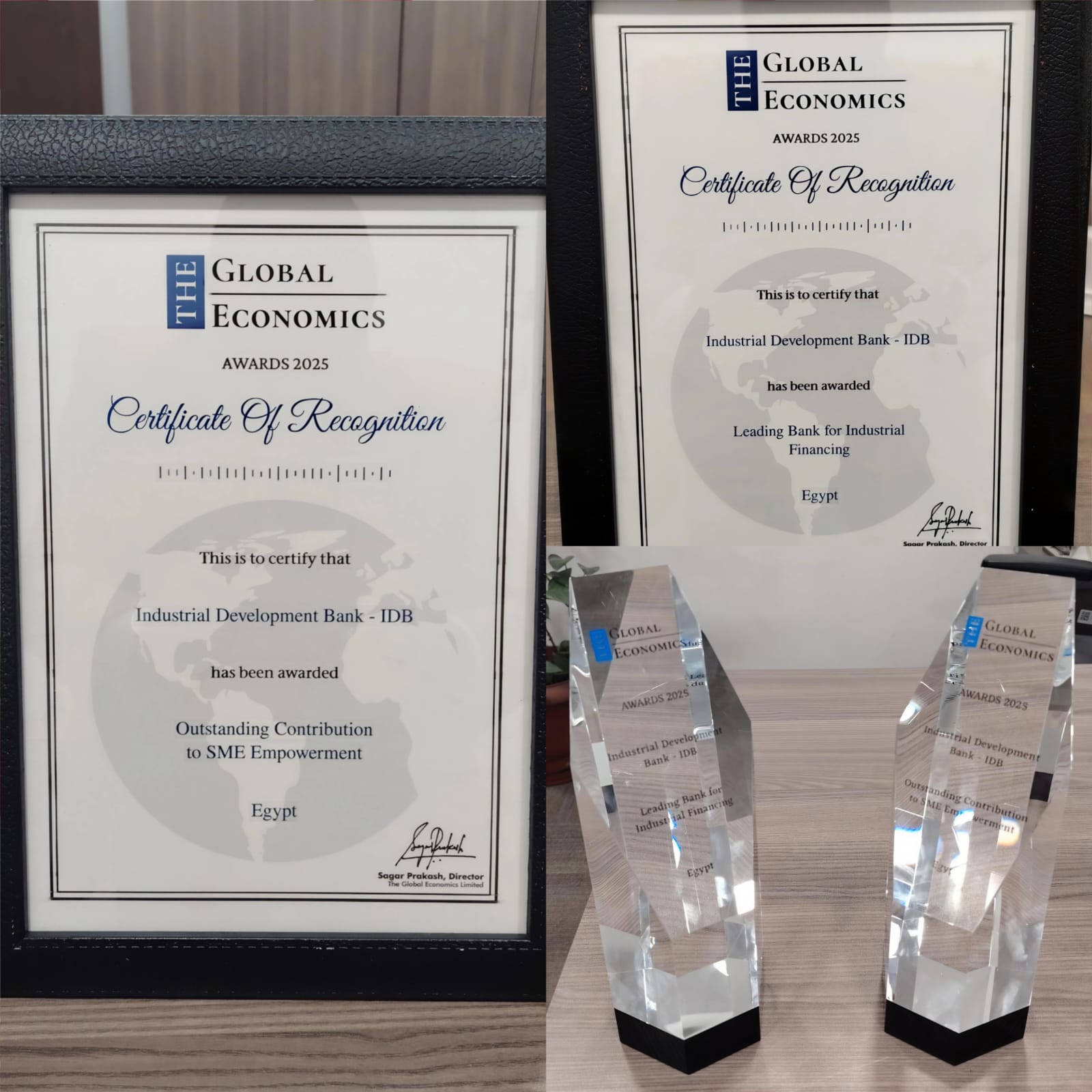 بنك التنمية الصناعية يحصد جائزتين دوليتين من The Global Economics Awards 2025