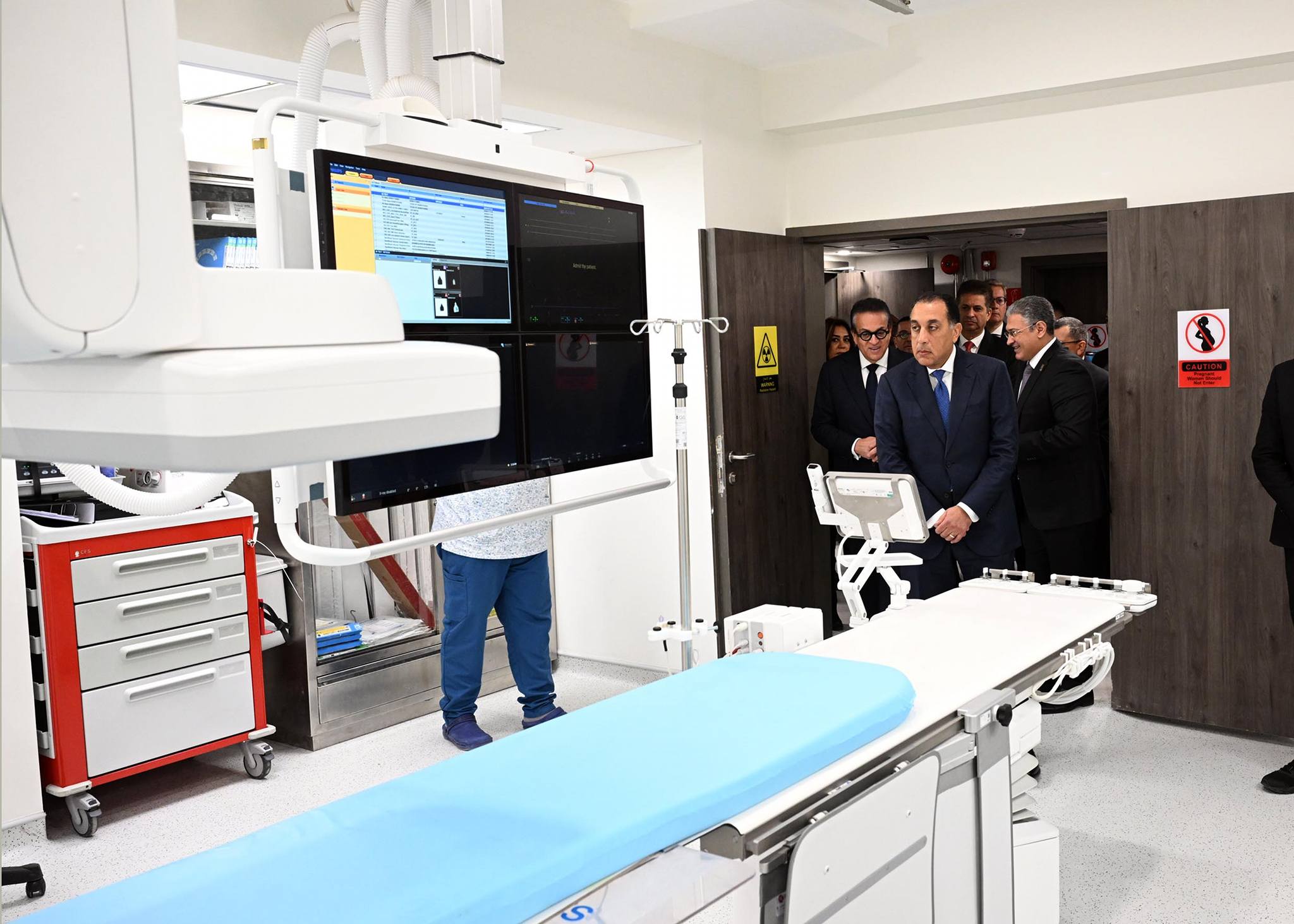 وتضمنت جولة رئيس مجلس الوزراء ومرافقيه بالطابق الأرضي قسم الطوارئ، بما يتضمنه من مدخل الطوارئ، وغرفة الإنعاش، وغرف الحوادث، ومنطقة العلاج، ثم توجه لتفقد قسم الأشعة التي شملت الأشعة العادية وأشعة المسح الذري؛ حيث استمع لشرح من الدكتور أحمد عز الدين، الرئيس التنفيذي والعضو المنتدب لمجموعة مستشفيات كليوباترا، حول هذه الأقسام.