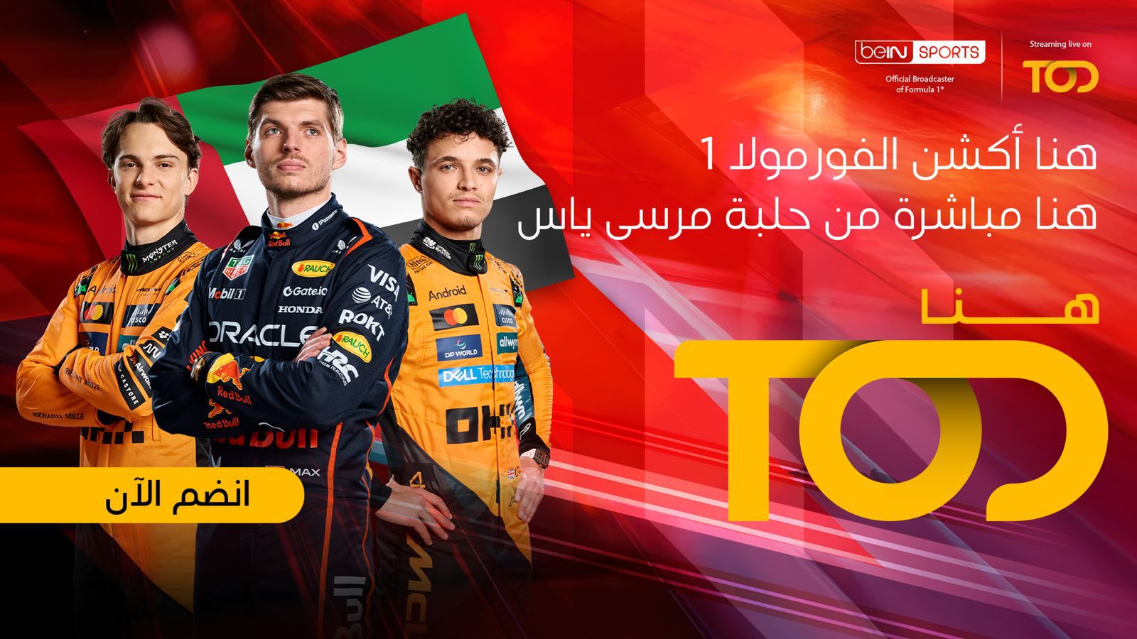 تقدم TOD، المنصة الرائدة في مجال البث الرياضي والترفيهي في منطقة الشرق الأوسط وشمال أفريقيا، تجربة استثنائية لعشاق سباقات السيارات من خلال البث الحصري لسباق جائزة أبوظبي الكبرى للفورمولا 1® لعام 2025، والمقام خلال الفترة من 5 إلى 7 ديسمبر 2025.