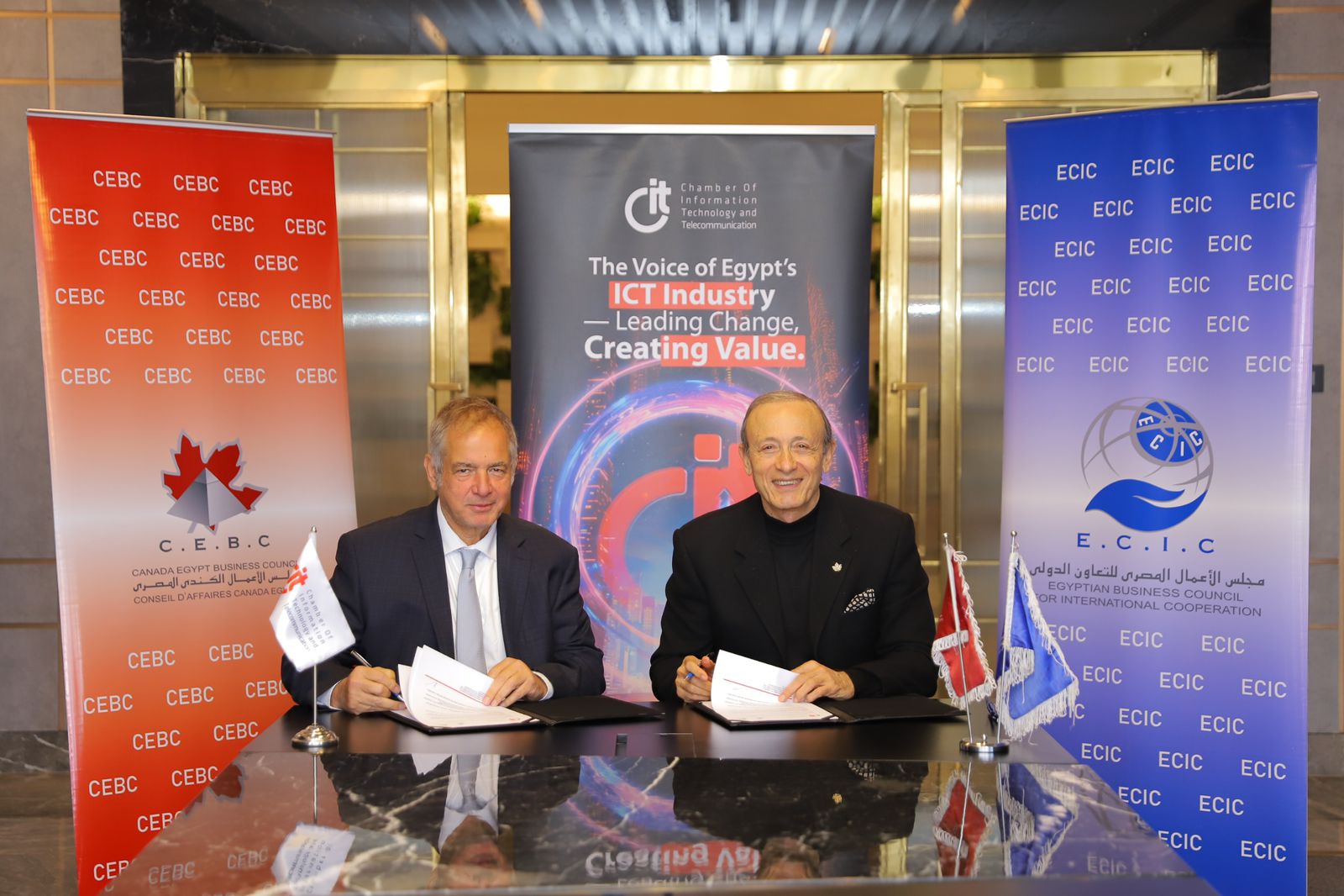 وقعت غرفة صناعة تكنولوجيا المعلومات والاتصالات المصرية CIT مذكرة تفاهم استراتيجية مع مجلس الأعمال الكندي المصري ومجلس الأعمال المصري للتعاون الدولي، في خطوة نوعية تُعزز حضور شركات التكنولوجيا والاتصالات المصرية على الساحة الدولية، وتفتح أمامها أسواقًا عالمية جديدة تدعم مسيرة التحول الرقمي وتُرسّخ مكانة مصر مركزًا إقليميًا للابتكار والاقتصاد المعرفي.