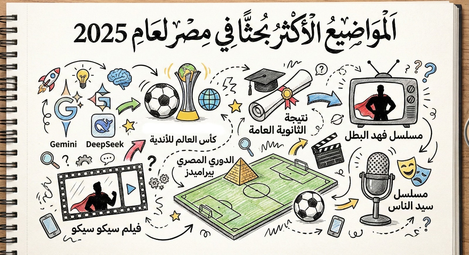 وتظل كرة القدم هي الملك المتوج لعمليات البحث فى مصر، حيث أشعلت بطولة كأس العالم للأندية ومباريات النادي الأهلي (تحديداً ضد خصوم مثل بالميراس وأورلاندو بايرتس) حماس الجماهير. على صعيد الأخبار، كان الاستقرار الإقليمي وتحديداً الصراع الإيراني الإسرائيلي والمؤشرات الاقتصادية المحلية مثل سعر الذهب في مقدمة الاهتمامات.