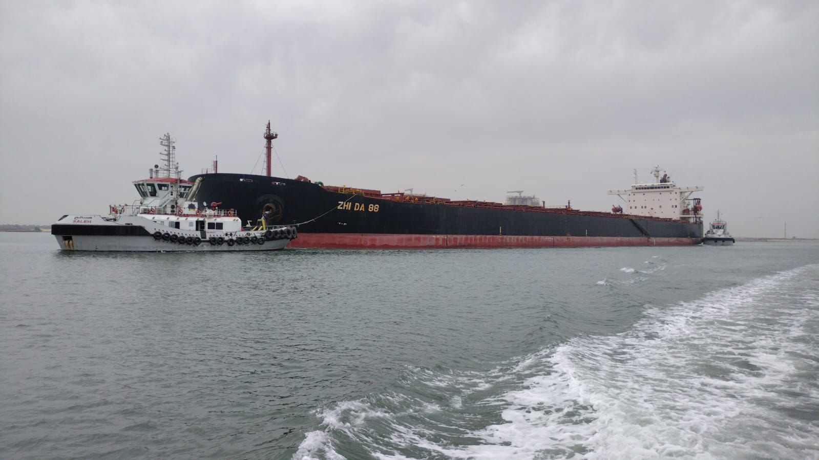 ويبلغ طول السفينة ( 289 مترًا )، فيما يصل غاطسها إلى( 15,5 مترًا )، وهو ما يعكس الجاهزية الفنية العالية للميناء وقدرته على استقبال السفن ذات الحمولات القياسية، في ضوء أعمال التطوير المستمرة التي تشهدها البنية التحتية للميناء.