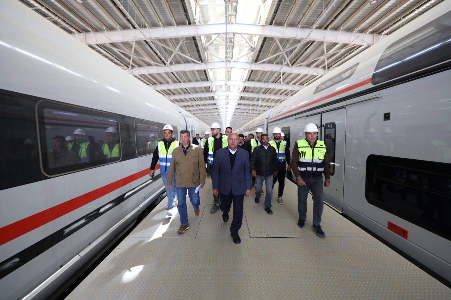 في إطار توجيهات فخامة الرئيس عبد الفتاح السيسي رئيس الجمهورية بالمتابعة المستمرة لمشروع شبكة القطار الكهربائي السريع قام الفريق مهندس / كامل الوزير وزير النقل يرافقه المهندس /وجدي رضوان نائب الوزير للجر الكهربائي والسكك الحديدية واللواء / طارق جويلي رئيس الهيئة القومية للأنفاق بجولة تفقدية لمتابعة اعمال انشاء وتنفيذ ورشة الخط الأول للقطار الكهربائى السريع( السخنة / العلمين/ مطروح ) بحدائق أكتوبر المقامة على مساحة 578 فدان والتي تعتبر واحدة من أكبر وأهم مراكز صيانة وتشغيل القطارات في المنطقة،) والتي يتم تنفيذها بواسطة تحالفين الأول تحالف (أوراسكوم – الرواد) لتصميم وتنفيذ الاعمال المدنية والمعمارية والبنية التحتية والأعمال الكهروميكانيكية والثاني تحالف (سيمنز – أوراسكوم – المقاولين العرب) لتنفيذ أعمال السكة وأنظمة الاشارات وأنظمة الامداد بالطاقة وأعمال التحكم