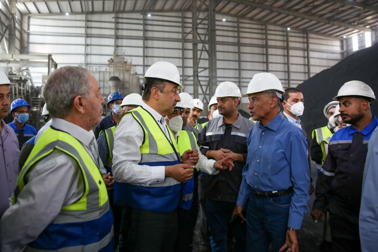 وزير قطاع العام يتفقد التشغيل التجريبي لمصنع بلوكات الأنود الكربونية بالعين السخنة بعد إنجاز المرحلة الأولى من إعادة التأهيل