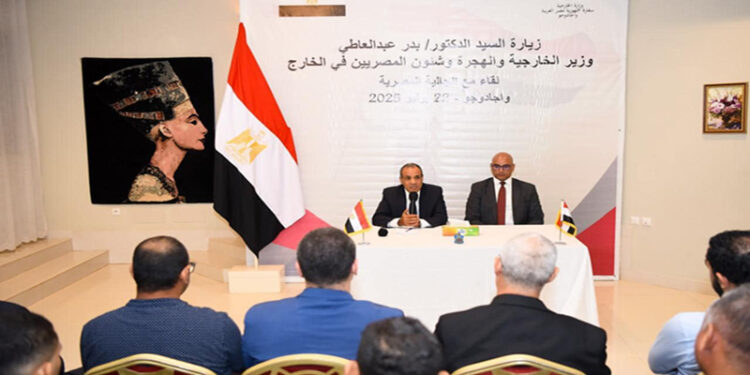 التقى د. بدر عبد العاطي، وزير الخارجية والهجرة، يوم الثلاثاء الموافق ٢٢ يوليو ٢٠٢٥، بأعضاء الجالية المصرية في بوركينا فاسو، وذلك خلال زيارته إلى العاصمة واجادوجو في إطار جولته إلى عدد من دول غرب إفريقيا. وحضر اللقاء الاستاذ احمد المسلماني رئيس الهيئة الوطنية للإعلام، والأستاذ عماد الدين حسين رئيس تحرير جريدة الشروق.