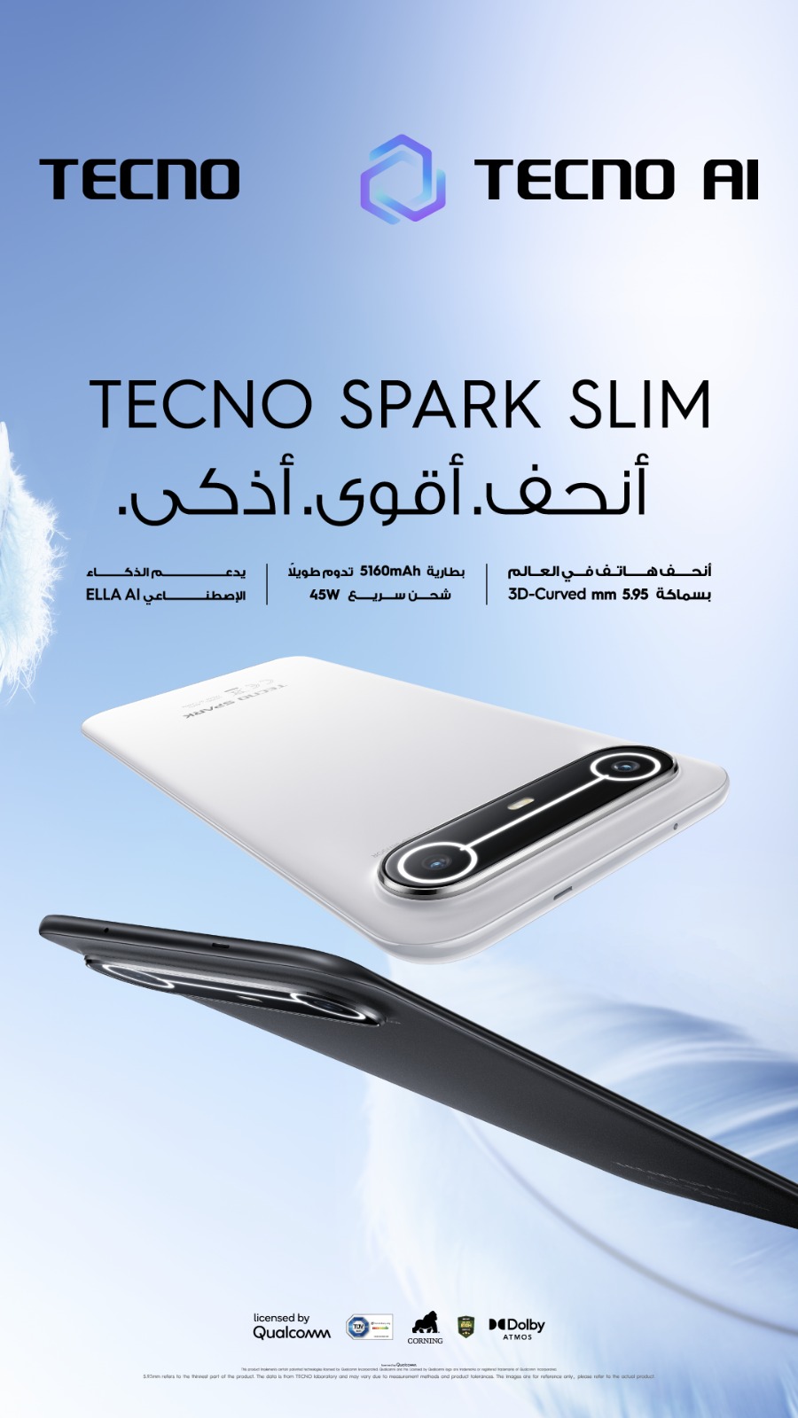 أعلنت TECNO، العلامة التجارية العالمية الرائدة في مجال التكنولوجيا المعتمدة على الذكاء الاصطناعي، عن الإطلاق الرسمي لهاتفها الجديد SPARK Slim في السوق المصري، والذي يُعد أنحف هاتف ذكي بشاشة منحنية ثلاثية الأبعاد في العالم بسُمك لا يتجاوز 5.93 مم فقط، ليقدّم تجربة استخدام متكاملة تجمع بين النحافة الفائقة، التصميم الأنيق، والأداء الذكي.
