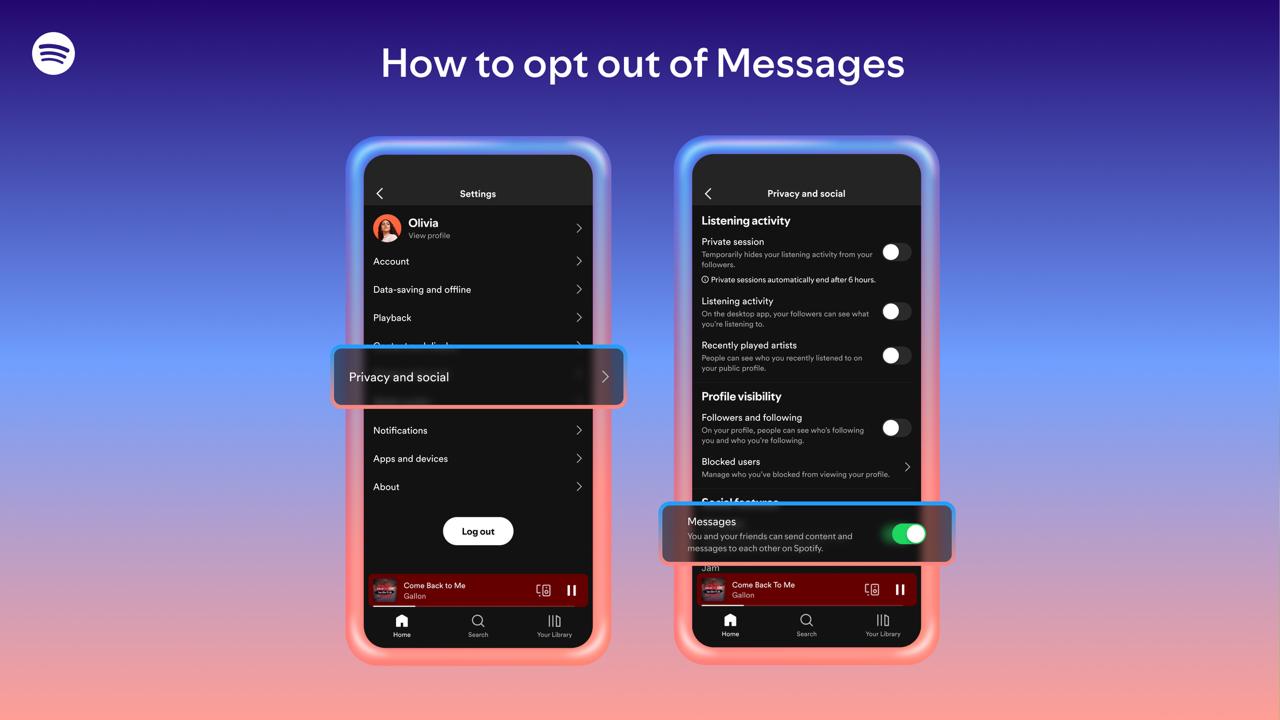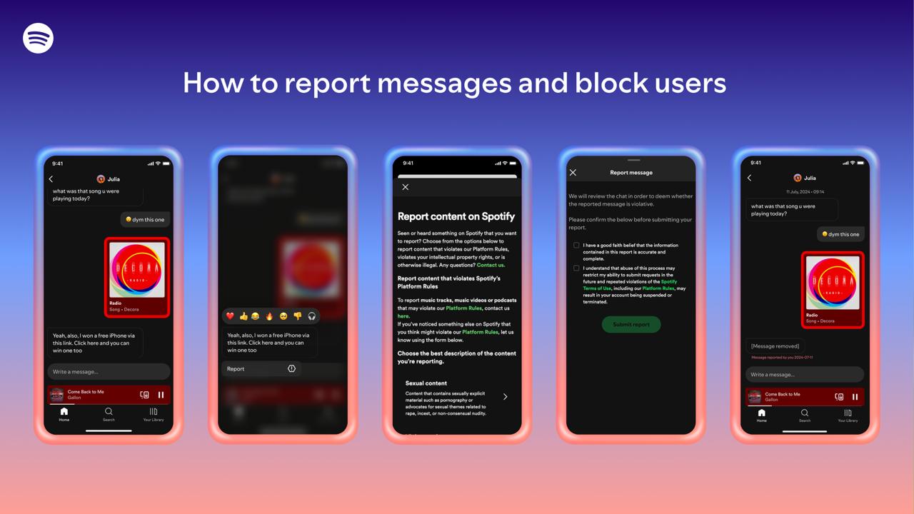 يؤكد Spotify أن المستخدمين يملكون السيطرة الكاملة على تجربتهم، إذ يمكنهم قبول أو رفض طلبات المراسلة، أو حظر المستخدمين، أو تعطيل الميزة كليًا من الإعدادات.