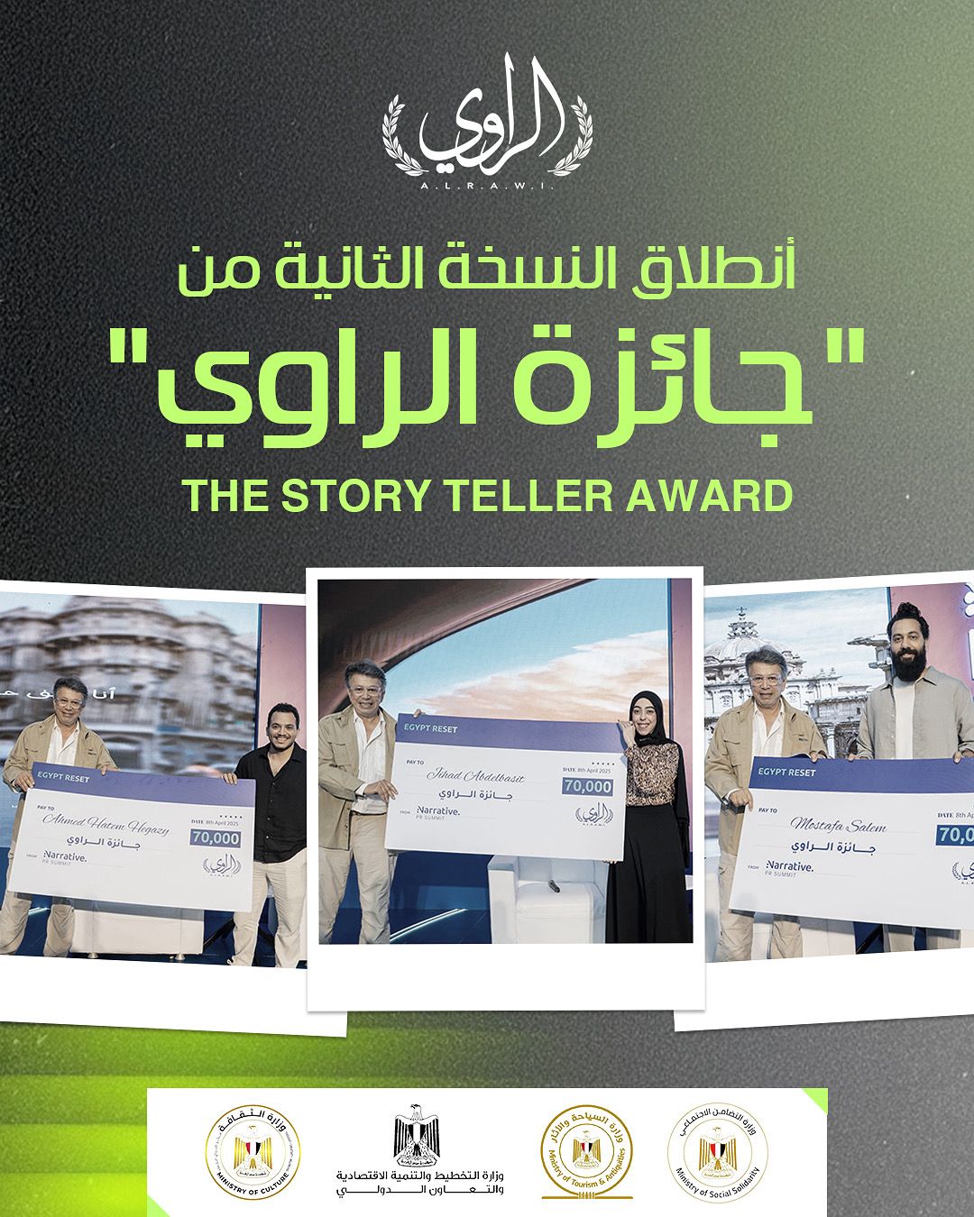 تحت رعاية أربع وزارات تشمل وزارة التخطيط والتنمية الاقتصادية والتعاون الدولي، وزارة التضامن الاجتماعي، وزارة السياحة الآثار، ووزارة الثقافة، تنطلق النسخة الثانية من “جائزة الراوي” The Story teller Award ، والتي تشهد هذا العام توسعًا ملحوظًا في فئات المحتوى الإبداعي، لاكتشاف المواهب الشابة في صناعة المحتوى ، والمساهمة في رسم صورة مصر كما يراها الشباب وتعزيز روح الانتماء لديهم.