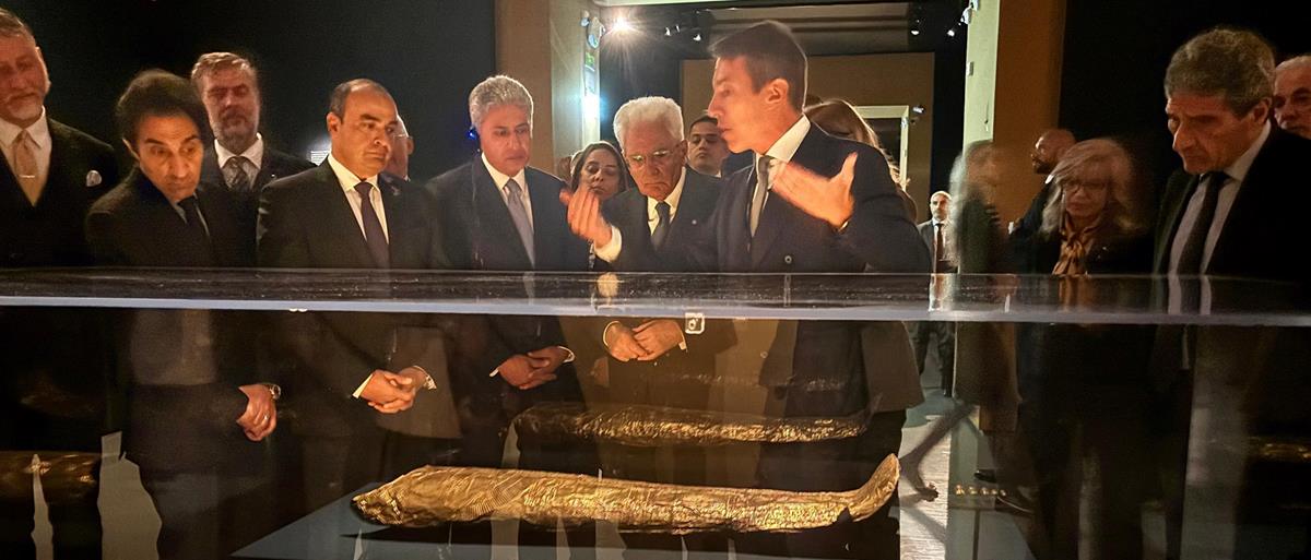 افتتح اليوم سيرجيو ماتاريلا، رئيس جمهورية إيطاليا، معرض “كنوز الفراعنة” المقام بقاعة Scuderie del Quirinale التابعة لمؤسسة الرئاسة الإيطالية في العاصمة روما، وذلك بحضور السيد شريف فتحي وزير السياحة والآثار المصري، والسيد أليسندرو جولي وزير الثقافة الإيطالي، والسفير بسام راضي سفير مصر لدى إيطاليا، والدكتور محمد إسماعيل خالد الأمين العام للمجلس الأعلى للآثار، والدكتور محمد شعبان معاون وزير السياحة والآثار للتحول الرقمي، والدكتور طارق العوضي المشرف علي المعرض
