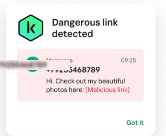 من هذا المنطلق قدمت كاسبرسكي ميزة “حماية الإشعارات” لمكافحة التهديدات الناشئة وتعزيز قدرات اكتشاف التصيد الاحتيالي؛ إذ تكتشف الروابط الخبيثة الموجودة في تطبيقات المراسلة والرسائل النصية القصيرة وإشعارات أي تطبيقات أخرى.
